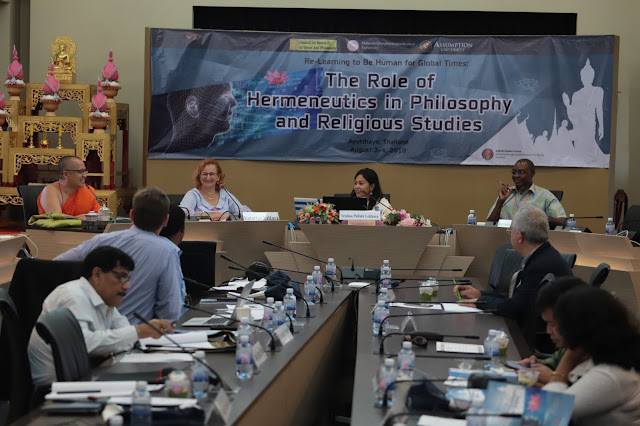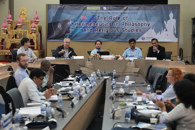 ในส่วน Session ที่ (4) Hermeneutics and Social Studies ดังปรากฏในงานเรื่อง Some Concerns on New Atheists’ Interpretation of Religion และ Postmodern Perspective of Hermeneutics Studies in Northeast India และ ICT and the Public School as New Opportunities for Interfaith Dialogue and for Fostering Hermeneutical Consensus เป็นต้น (5) Hermeneutic Implications ในงานเรื่อง Siho: Spiritual Symbol in Khon Kaen City และในงาน Nāgārjūna’s Challenge to Ancient Buddhist Hermeneutics: An Inquiry into Evolving Emptiness (Śūnyatā) Doctrine in Buddhism และ Influence of Christianity on Bodo Culture: A Case Study of the Bodo Christians in Assam เป็นต้น